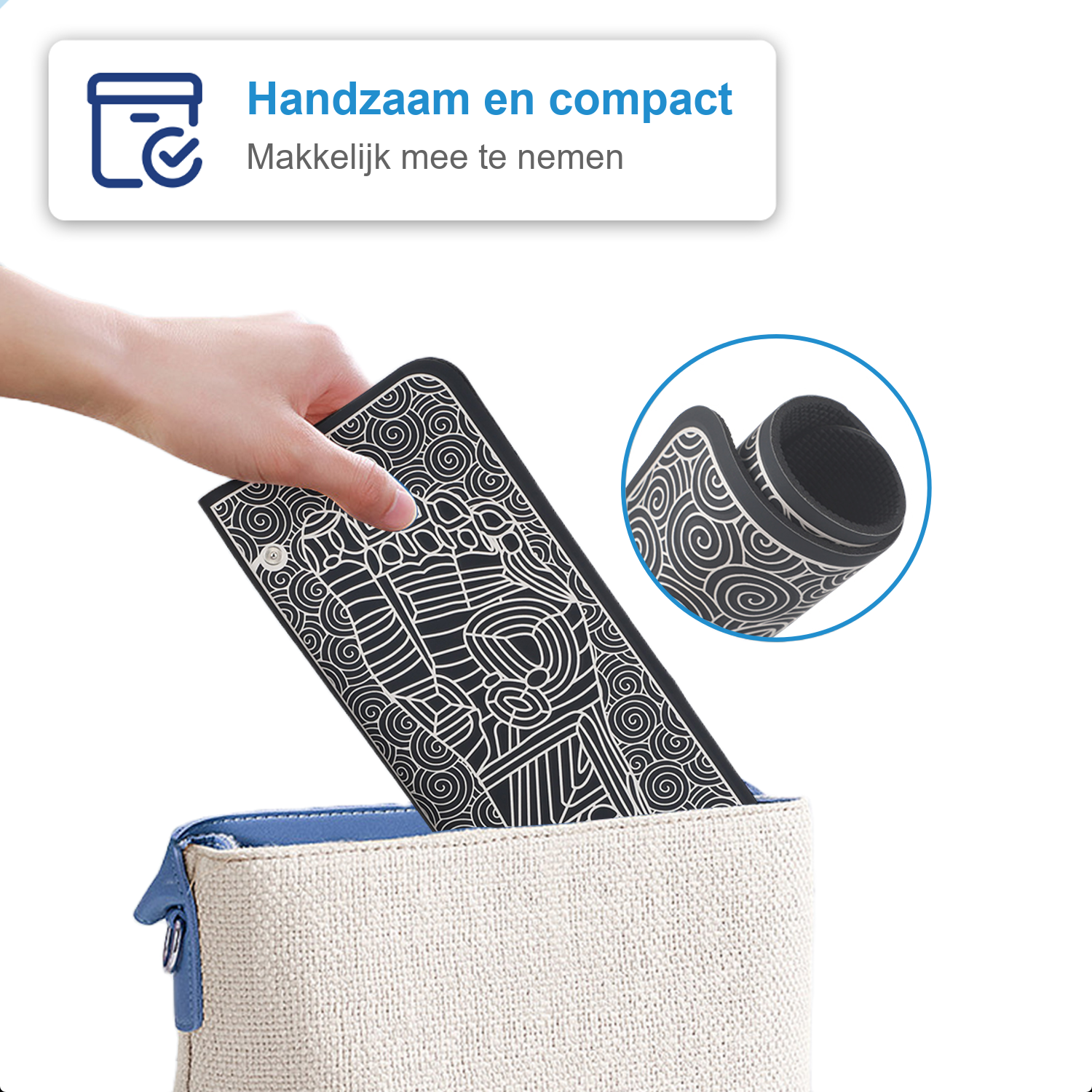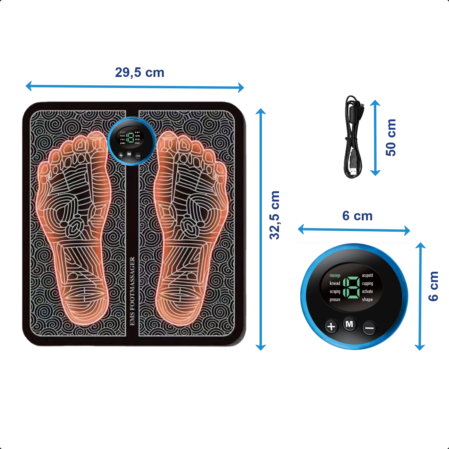 De massager maakt gebruik van NMES-technologie om elektrische impulsen naar de spieren en zenuwen in je voeten en benen te sturen. Dit stimuleert de bloedcirculatie, vermindert pijn en ondersteunt het herstel van zenuwen.
