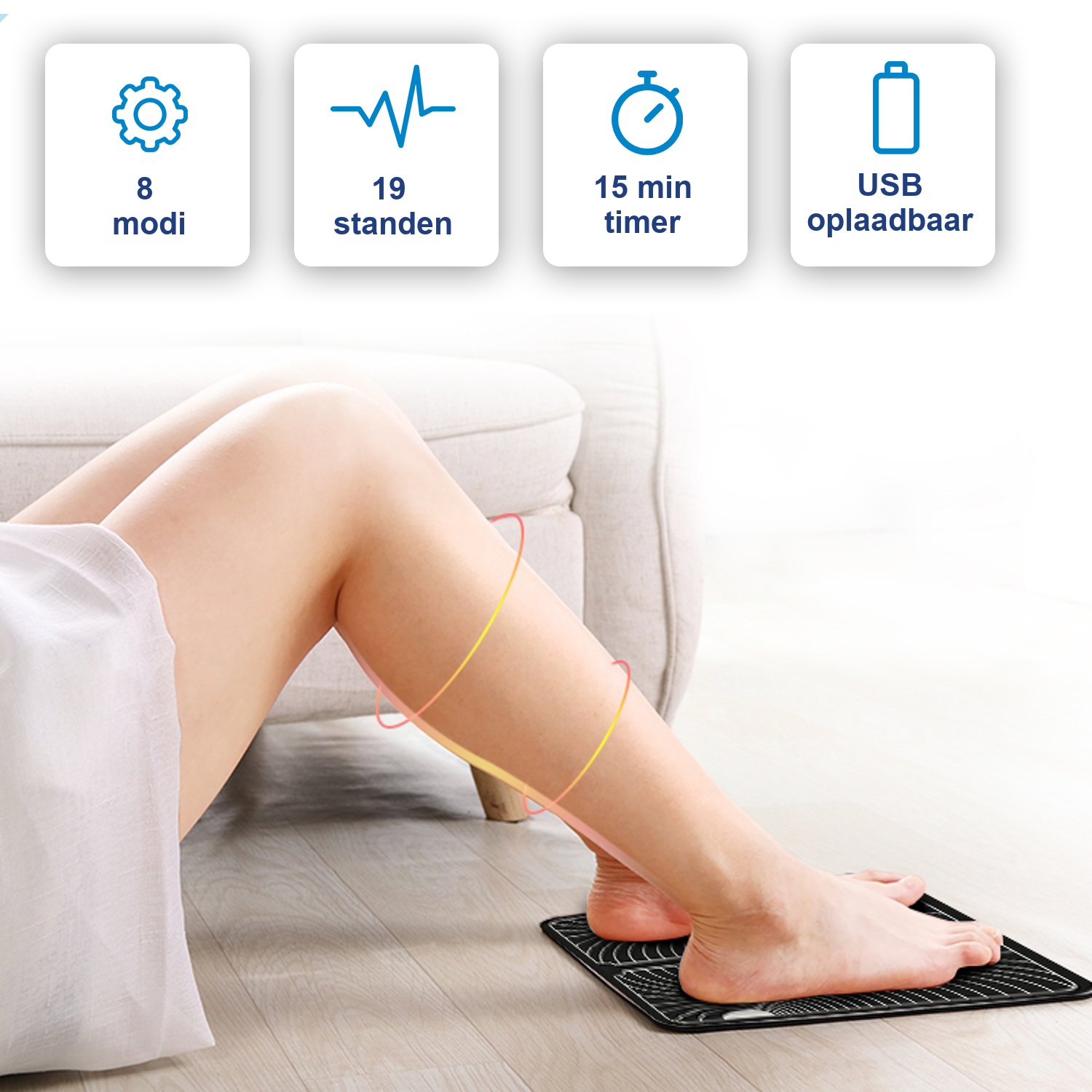 Slechte bloedcirculatie kan leiden tot zuurstoftekort in je zenuwen, wat resulteert in pijn en gevoelloosheid. De Kluvaro EMS Voetmassager: